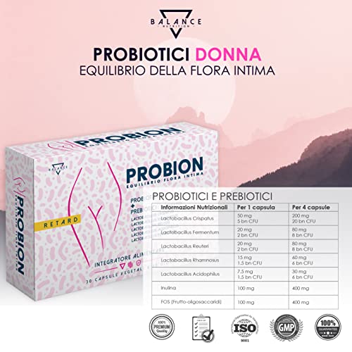 PROBIONĀ® | Probiotici Donna | Equilibrio della Flora Intima | 20 Miliardi CFU/giorno | Probiotici e Prebiotici insieme con: Lactobacillus Rhamnosus, Reuteri, Crispatus, Fermentum | 30 Capsule