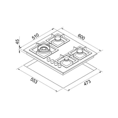 ELLECI - Plano 60 Tcl Piano Cottura Titanio Da Incasso Gas 4 Fornelli
