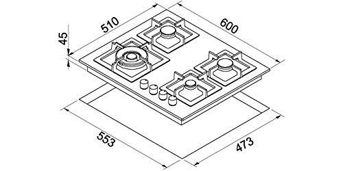 ELLECI Piani Cottura Da Incasso Plano 60 Tcl 4 Fuochi Granitek 40 Nero Pgsp60140ws