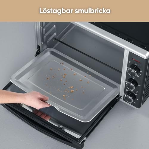 Severin To 2058 Forno Elettrico 42 L Da 1800w, Forno Elettrico Ventilato Con Pietra Refrattaria Per Pizza, Luce Interna, Girarrosto, Teglia, Leccarda, Da 60 A 230°, Nero/argento