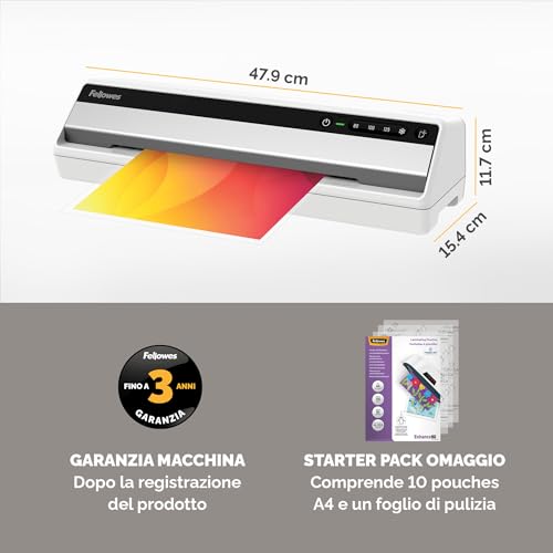 Fellowes Plastificatrice Saturn 3i in A3 Bianca+Kit 10 Pouches