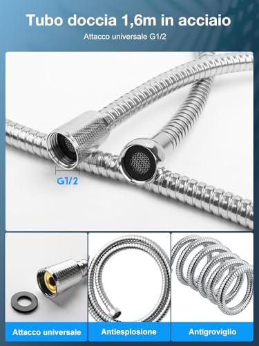 Soffione doccia con tubo 1,6M, Soffione doccia con anticalcare, YEAUPE PRO ugGP