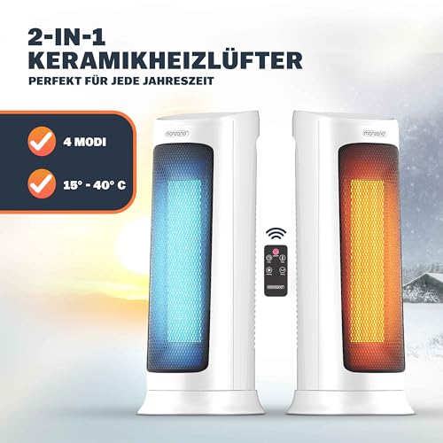 Monzana Stufa 2000W 15-40° Timer Telecomando Oscillazione 120° Timer Termoventilatore Risparmio Energetico Ceramico Bianco