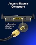 Cudy Router 4G+ LTE Cat.6 300 Mbps WiFi AC 1200 Mbps, Qualcomm Chipset, 4 x SMA per Antenna Estern, Dual SIM, Dual Band AC1200, 4 porte Gigabit, OpenVPN, WireGuard, Blocco banda, TTL, a comando