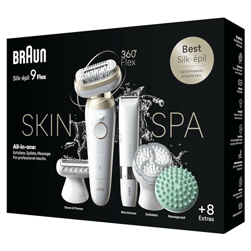 Braun Silk Epil 9 Flex SkinSpa Epilatore Elettrico Donna Con Testina Flessibile A 360° Per Una Epilazione Semplice, Wet & Dry, Pelle Liscia A Lungo, Idea Regalo, 9-481 3D Bianco/Oro