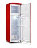 SEVERIN RKG 8983 [EEK D] - Frigorifero retrò con applicazioni cromate, congelatore superiore, illuminazione a LED, 1-7°C, volume netto 246 L, solo 39 dB, rosso, RKG 8983