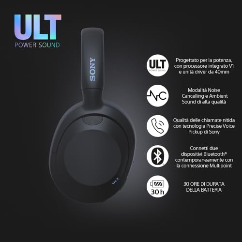 Sony ULT WEAR – Cuffie wireless con noise cancelling, bassi profondi e potenti, stesso processore delle WH-1000XM5, chiamate nitide, batteria fino a 30 ore, compatibili con iOS e Android – Nero