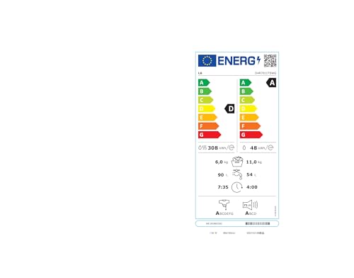 LG AI DD D4R7011TSWG Lavasciuga 11/6kg, Serie R7, Classe A-10%/D, Lavatrice Asciugatrice, 1400 Giri, TurboWash 360, Vapore, Allergy Care, Eco Hybrid, Wi-Fi, Bianca