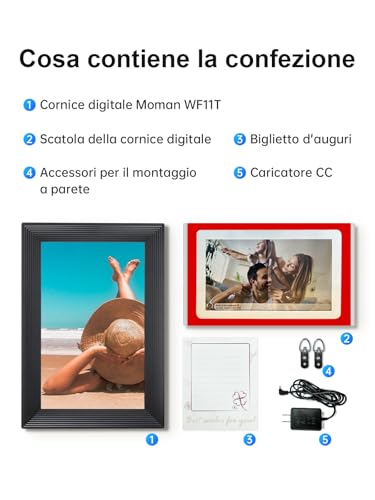 Moman Cornice Digitale WF11T, 10,1 Pollici Wifi IPS Touch Screen con Memoria da 32GB Condivisione Istantanea Montabile a Parete per Famiglia Amici Compleanno Anniversario, Cornice-Digitale-Foto-Wifi