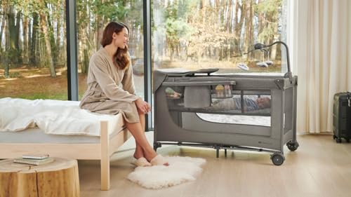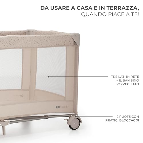 Kinderkraft JOY 2 ACC, Lettino da Viaggio 3 in 1, lettini per Neonati, lettino per Bambini, lettino da Viaggio, design moderno, Dimensioni ridotte e Pieghevole, Accessori Pratici, ruote, Beige