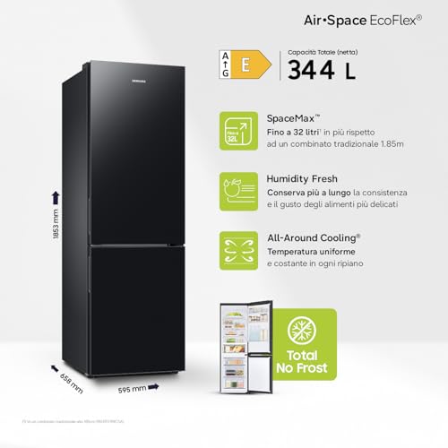 Samsung EcoFlex Frigorifero Combinato RB33B612EBN/EF, Wifi, All-Around Cooling, Space Max, Total No Frost, 344 L, LxAxP: 59,5 x 185,3 x 65,8 cm, New Empire Black