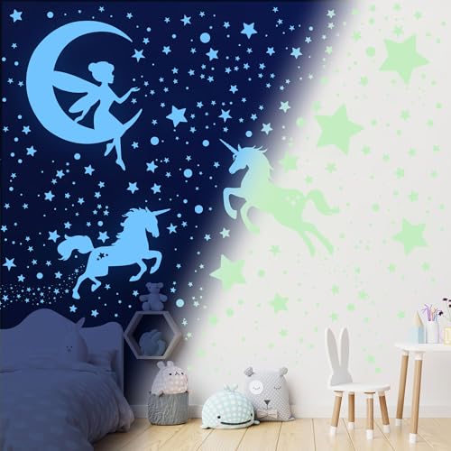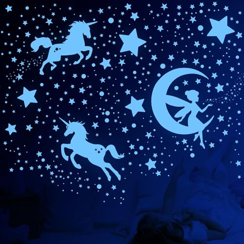 585 Pezzi Unicorno Stelle Fluorescenti Adesive Soffitto Stelline Luminose per Cameretta Adesivi Murali Bambini Unicorno Stelle Adesive Fluorescenti Stickers Murali per Bambine Cameretta Soggiorno