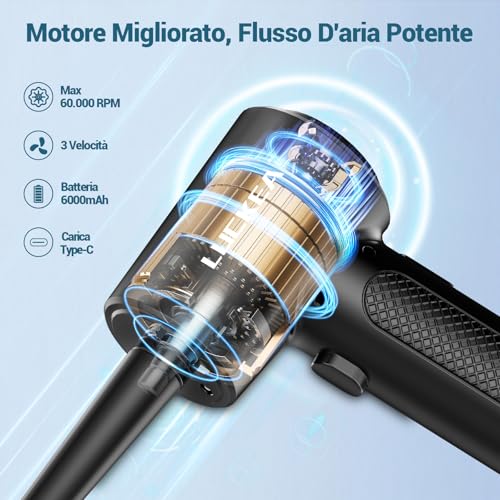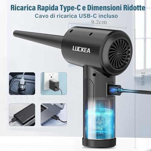 Elettrico Rimuovi Polvere Aria Compressa Senza Fili - con i Suoi 5 Ugelli e 3 Spazzole, 3 Velocità Compressore Aria Portatile Set di Pulizia per Computer, Laptop, Auto