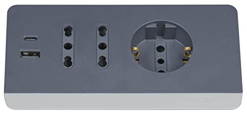 BTICINO Colore Grigio, CONFEZIONE 1 *** Bticino multipresa da scrivania prese bipasso presa tedesca e usb a+c