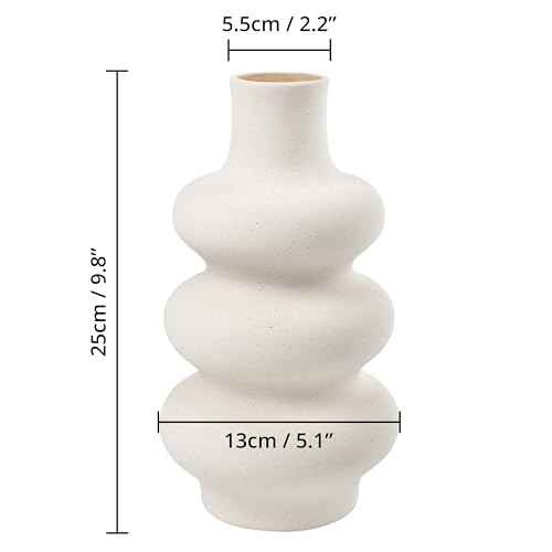 Winter Shore Vaso Ceramica Beige - Centrotavola Moderno da 25 cm - Design a Ciambella per Piume, Fiori Secchi, Bouquet - Per Ufficio, Zona Pranzo, Feste
