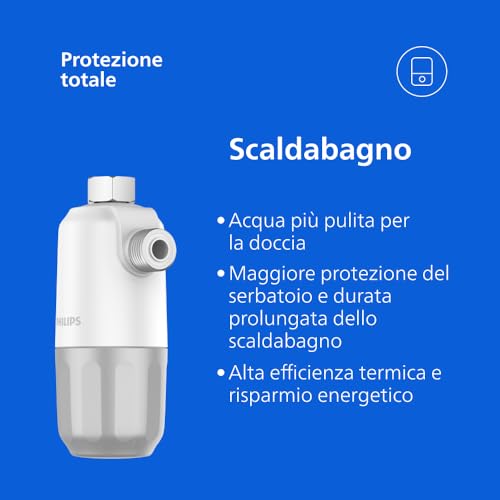 Philips Water INIBITORE DI CALCARE, filtraggio a 3 stadi, capacità di filtraggio di 27.000 L, protegge la lavatrice, la lavastoviglie e lo scaldabagno