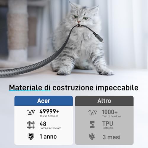 acer Cavo USB C a HDMI 4K@60Hz, cavo Thunderbolt 4 3 Type C HDMI 2.0 compatibile con iPhone 16 Plus Pro Max 15 MacBook Pro Air Surface Pro 10 iPad Pro Air Galaxy S24 Ultra 2M