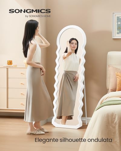 SONGMICS Specchio da Terra a Figura Intera, 160 x 50 cm, Specchio Ondulato Irregolare con Supporto, Cornice in MDF, Camera da Letto Soggiorno Ingresso, Bianco Nuvola LFM027W01
