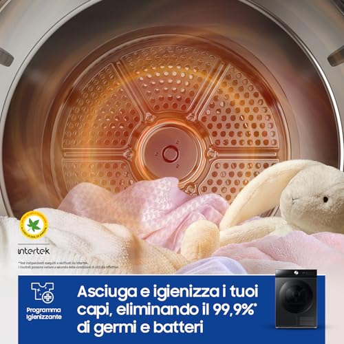 Samsung Asciugatrice DV90DB8845GBU3, a condensazione, 9 Kg, profondità 60 cm, Funzione refresh, programmi automatici: AI Dry+; Pronto Stiro; Classe A