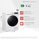 Samsung Asciugatrice Bespoke AI DV90DB7845GW/U3, 9 kg, Pompa di Calore, Wifi, Sensore Optimal Dry, Quick Drive, Display AI Control, Carica Frontale, 60L x 85H x 60P cm