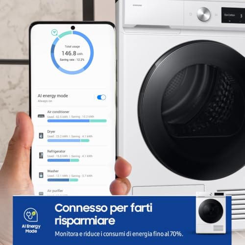 SAMSUNG Asciugatrice DV90DB7845GWU3 Capacità 9 Kg Motore Inverter Classe Energet