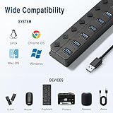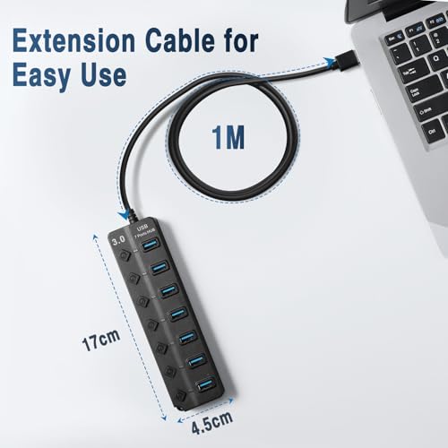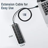 Hoppac Hub USB Multipresa a 7 Porte (1 USB 3.0 6USB 2.0) con Interruttori Indipendenti, Spie LED e Cavo da 1m - Ciabatta USB Multi Porte Plug & Play per PC, Laptop