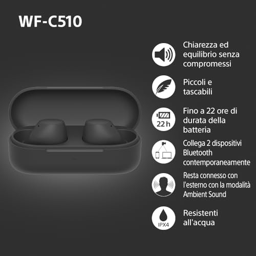 Sony WF-C510 Cuffie wireless piccole e leggere con connessione multipoint
