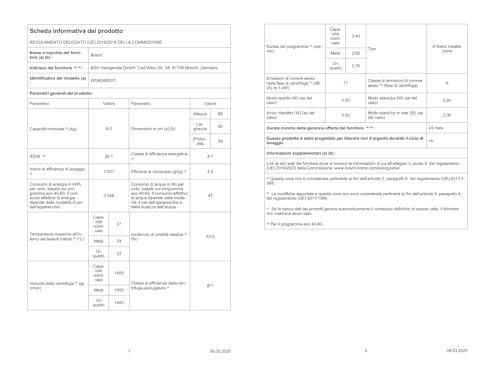 Bosch WGB24402IT LAVATRICE, Caricamento frontale, 9 kg, 14 programmi, Profondità 59 cm, Giri 1400 rpm, Bianca, livello rumorosità centrifuga 71 dB(A), Classe A