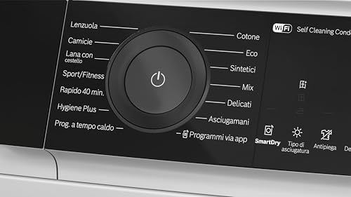 Bosch WQH245B0IT Serie 6 Asciugatrice smart a pompa di calore, 9 kg, Classe energetica C, Condensatore autopulente, Sensori di asciugatura intelligenti, Programmi brevi, Bianco, 60 Cm