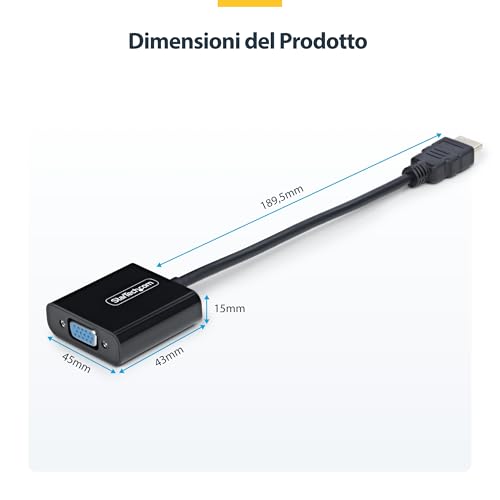 StarTech.com Adattatore HDMI a VGA, Convertitore Video Attivo 1080p per Notebook/Desktop. Da Sorgente HDMI a Monitor/Display