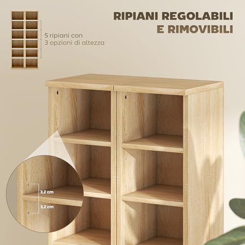 HOMCOM Set di 2 Mobili Porta CD con Ripiani Regolabili, Scaffale Porta 204 CD Salvaspazio, Mobile Portacd con 12 Scomparti, per Soggiorno, Camera da Letto, Ufficio, 21x22.5x88.5cm, Rovere