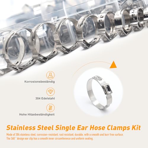 DIYoung 150 Pezzi Fascette Stringitubo, Tubi Regolabili a Un Orecchio 6-33,1mm in Acciaio Inossidabile 304 con Pinza per Fascette - Kit per Idraulica, Sanitari e Autoveicoli (12 Misure+pinze)