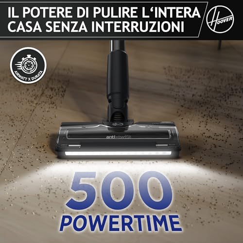 HOOVER HF2 Aspirapolvere senza fili Ultraleggero, POWERTIME 500, Tecnologia di compattazione polvere per aumentare la potenza di aspirazione, spazzola Multisuperficie Anti Groviglio, luci LED [HF210H]