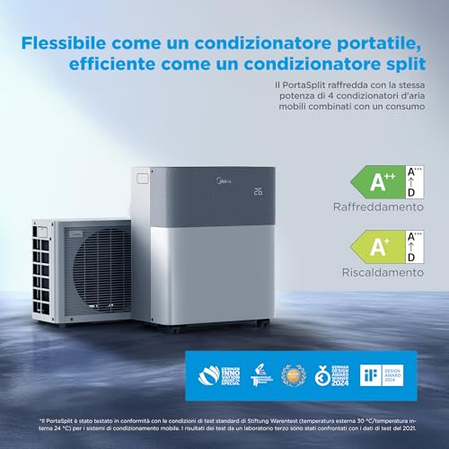 Midea Portasplit, pompa di calore mobile, raffreddamento A++/riscaldamento A+, 12000 BTU 3, 5kW, per ambienti fino a 42 m² / 105 m³, solo 39 dB(A) in modalità silenziosa