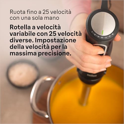 Braun Multiquick5 Pro MQ55236M, MINIPIMER CON 5 ANNI DI ASSISTENZA, Frullatore ad immersione, 25 velocità di lavorazione, Antischizzo, 1000W, 3 accessori, nero