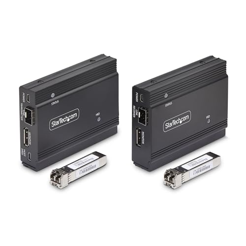 StarTech.com KVM Extender DisplayPort su fibra ottica, 4K 60Hz, kit di estensione, fino a 300m (multimodale) con moduli SFP+ preinstallati, 3x USB HID [FD121-KVM-EXTENDER]