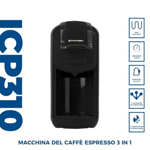 PYRAMIDEA Macchina per Caffè 3 in 1 Compatibile con Nespresso Dolcegusto e Cialde Bevande Fredde da 0,6L Nero ICP310B