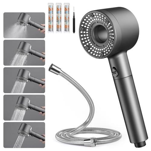 Blendura Soffione Doccia, Doccino per Doccia Alta Pressione Risparmio Idricocon con1.5m Tubo Doccia, Doccetta per Doccia con 5 Modi Funzione con 3 Filtro, Grigio