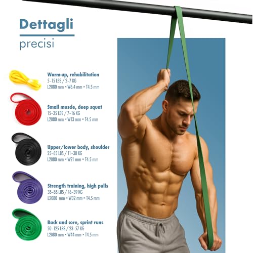 PORTENTUM Elastici fitness – Set da 11 – Bande elastiche 5 livelli intensità ...