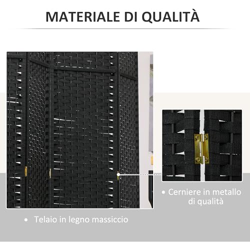 HOMCOM Divisorio di Ambienti Pieghevole a 6 Ante Intrecciato 240x170 cm Nero