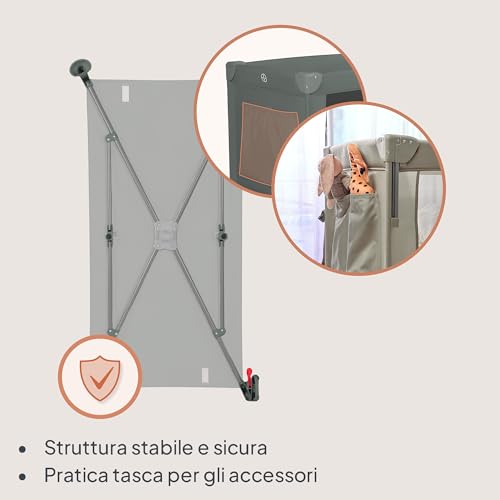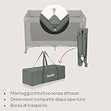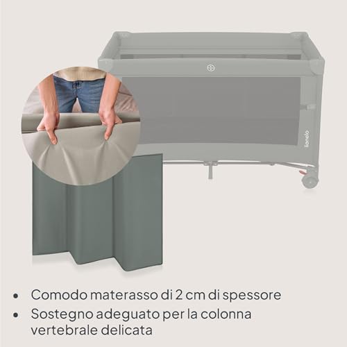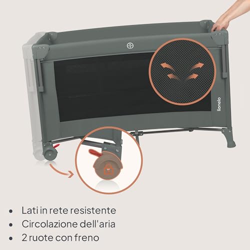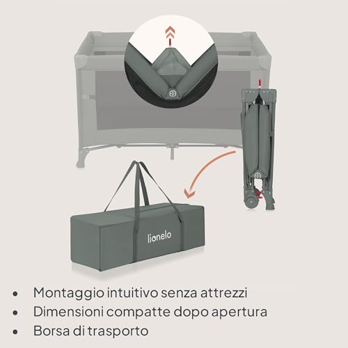 Lionelo Ellen Lettino da Viaggio 3 in 1 – Culla Co-Sleeping con Fianco Abbassabile, Box Bambini con Materasso a 2 Livelli, 125 × 65 × 78 cm, Uscita Laterale Zip, Ruote con Freno, Borsa da Trasporto