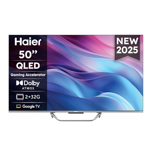 Haier QLED, 4K UHD H50Q80FUX 50'' Smart TV, Google TV, Dolby Audio, HDR 10, Telecomando Smart, Google Assistant, Bluetooth 5.1, Gaming Accelerator, USB 2.0, DBX TV, HDMI x4 [2025]