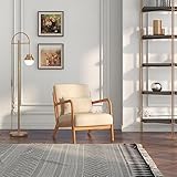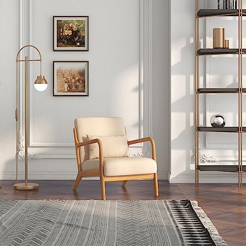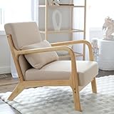 HOMCOM Poltrona da Salotto in Legno di Caucciù con Cuscino Lombare Sfoderabile e Schienale, Poltroncina Camera da Letto Sedia Moderna Imbottita con Braccioli, Portata 120 kg, 61x78x76 cm, Beige