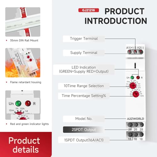 Relè Passo Passo e Temporizzatore Modulare, Silenzioso AC/DC 12V 24V 220V, 2 Funzioni in 1 (Bistabile + Timer 0.1s–10 Giorni), 2 Uscite 16A, 1 Modulo Barra DIN IP20