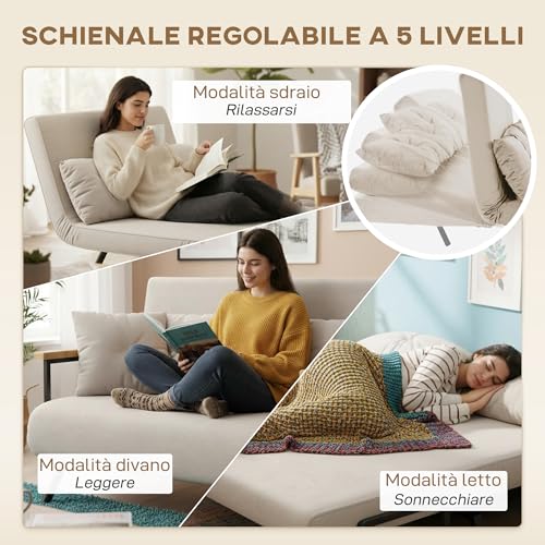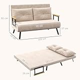 HOMCOM 4 in 1 Divano Letto 2 Posti, con Schienale Regolabile in 5 Posizioni, Divano Letto Matrimoniale Pieghevole con 2 Cuscini, Seduta Imbottita, in Velluto per Casa e Ufficio, 102x73x81 cm, Beige