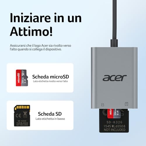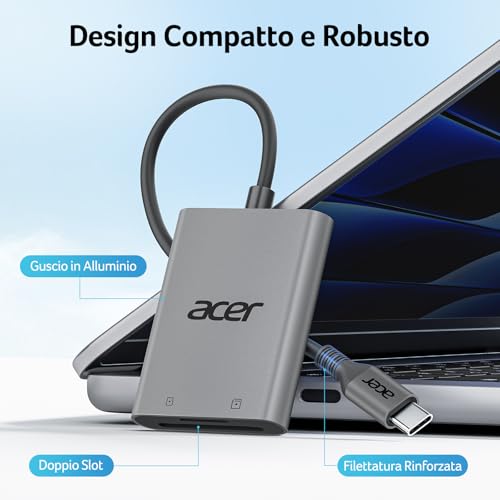 acer Lettore di schede SD USB C, Adattatore Schede di Memoria MicroSD USB C 5Gbps, Lettura e Scrittura Simultanea per SDHC/SDXC/MMC, Compatibile con iPhone 16 Plus Pro Max iPad Macbook Pro Air
