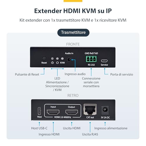 StarTech.com KVM Extender HDMI su Rete IP, Kit Trasmettitore e Ricevitore HDMI 4K e USB su Ethernet/Cat6, AVoIP, no Driver