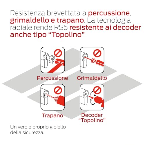 CISA - Cilindro Europeo RS5 10R3M707012 per Serratura Porta Blindata - Cilindro Serratura 30/30 con 5 File di Perni Radiali e 3 Chiavi a Duplica Digitale Protetta - Predisposizione al Pomolo
