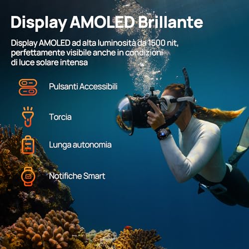 Mibro GS Explorer S GPS militare Smartwatch con Bi-Band GNSS,10 ATM Impermeabile per Subacquea, Autonomia 20 Giorni e Chiamate Bluetooth,1,32"AMOLED Perfetto per Avventura,Corsa,Ciclismo e Trekking