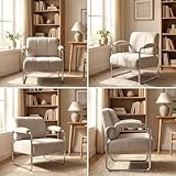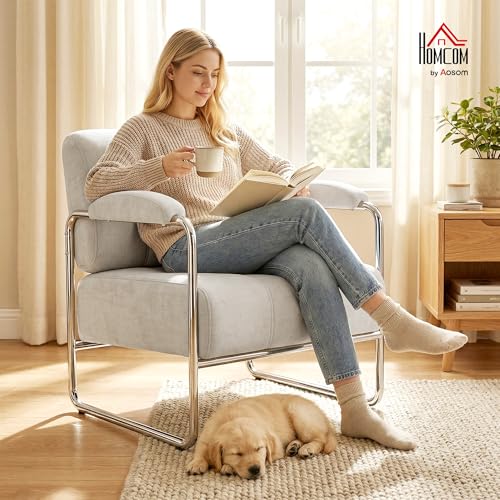 HOMCOM Poltrona Salotto Imbottito in Ciniglia con Doppie Cuciture, Poltroncina Camera da Letto Moderno con Braccioli e Gambe in Acciaio, per Soggiorno, Ufficio e Camera da Letto, 76x75x76 cm, Beige